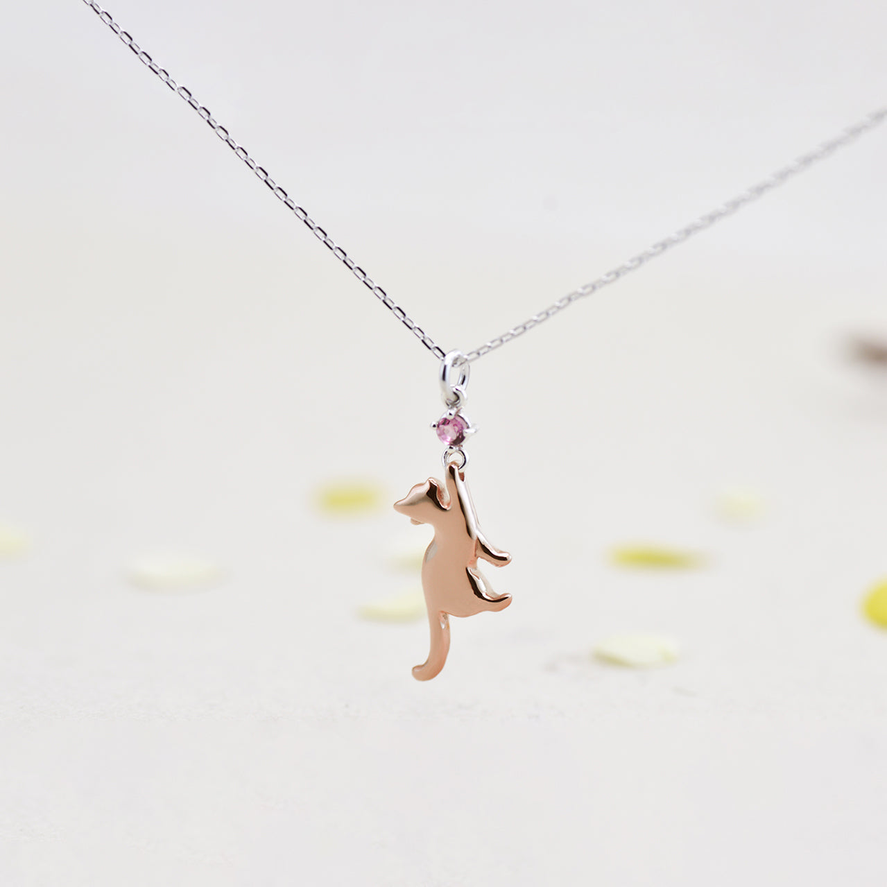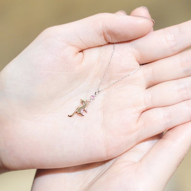 大切な誕生石にぶらさがり、いつでも一緒にお出かけする可愛い猫ちゃんのペンダントトップ。誕生石の種類と、猫パーツの素材、チェーンの有無を自由に選んでオーダーできます。愛らしいデザインを、あなたらしくアレンジしてください。(チェーンは別売りですが、オプションでチェーン付きもご用意しています。)