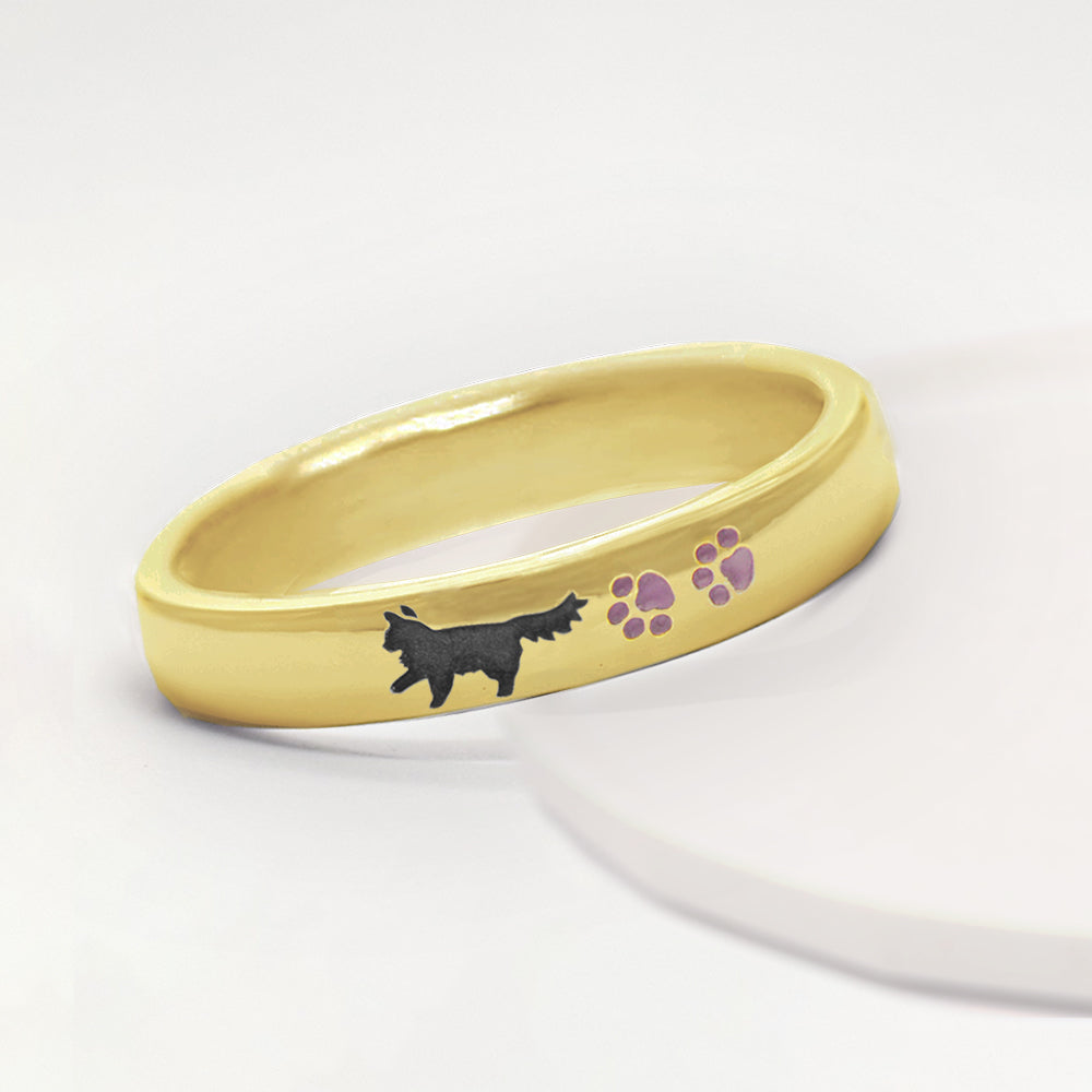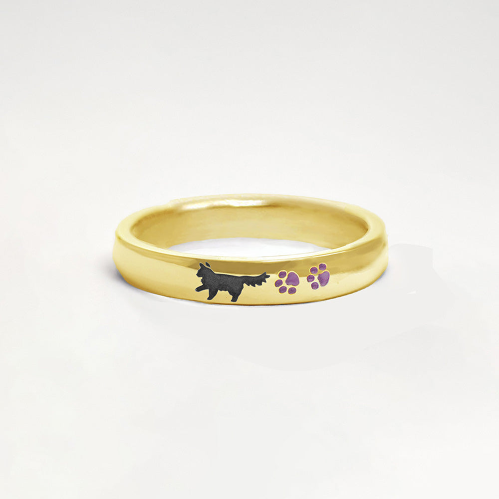 色とポーズが選べる長毛猫と肉球のリング イエローゴールド