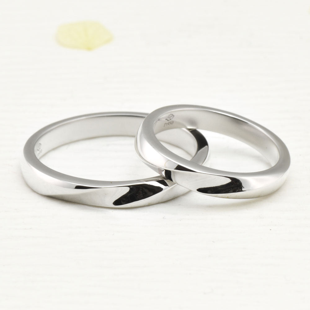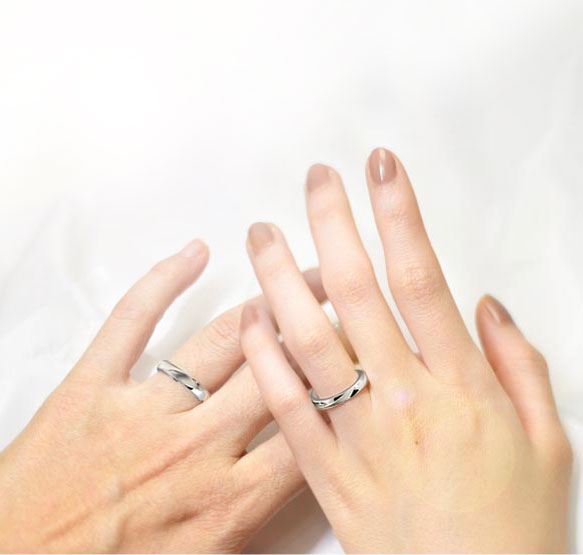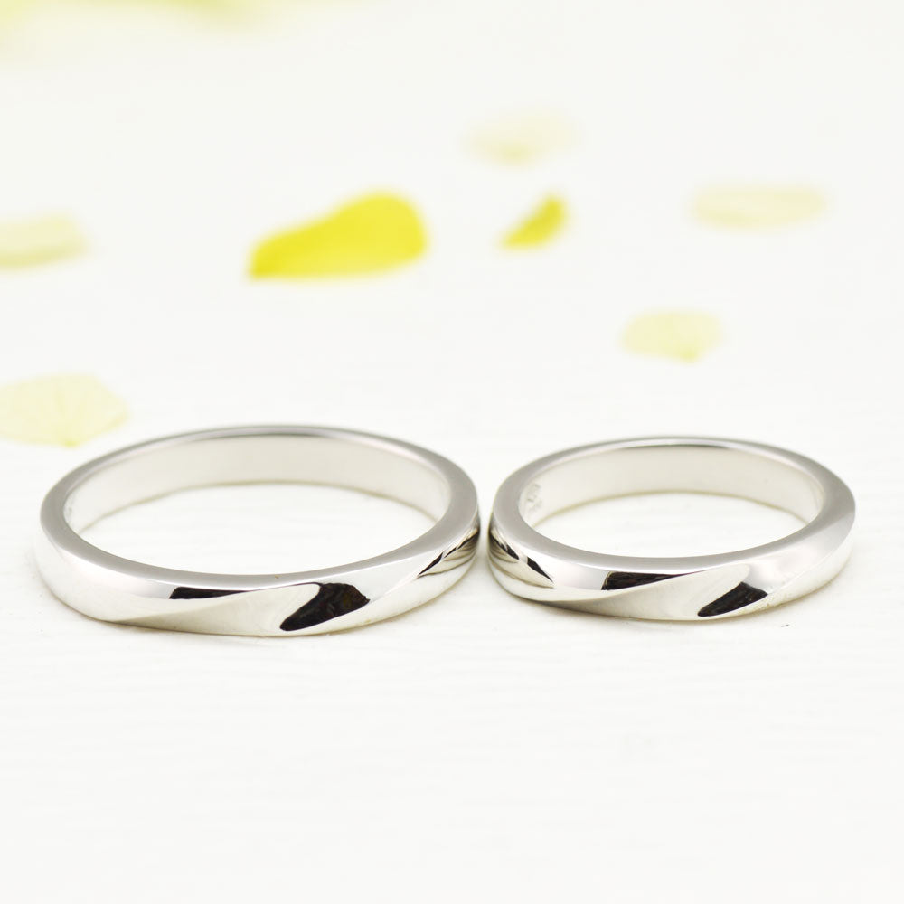 湖面に映る美しい月明りをイメージし、ひねりを加えた美しいフォルムが特徴の当店人気no.1の結婚指輪。